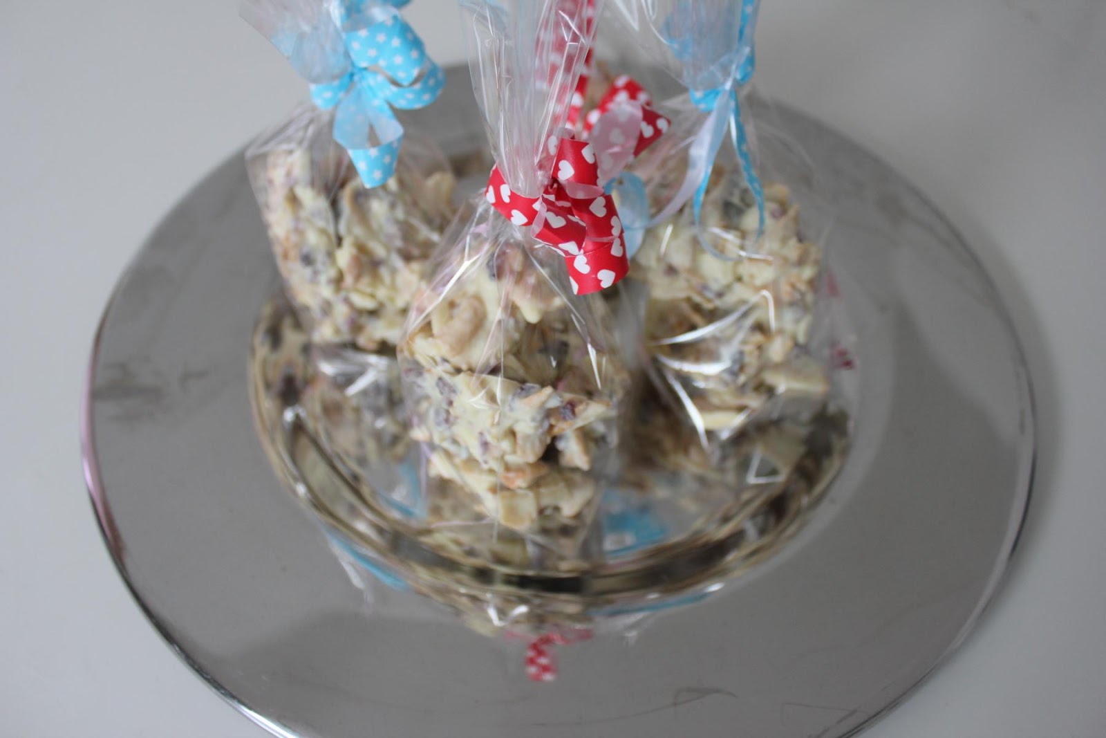 In kleine Tütchen verpackt eignet sich diese Leckerei als kleines Geschenk für jeden, den man glücklich machen möchte. Mit Vollmilchschokolade funktioniert es natürlich auch!