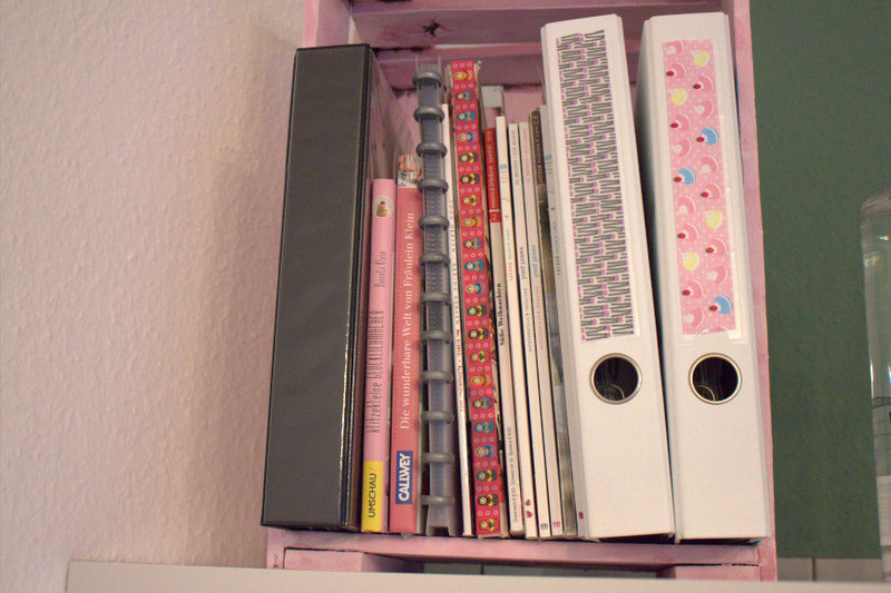 Der Ordner daneben enthält übrigens Rezepte und weil ich oft zum falschen Ordner gegriffen habe, habe ich sie irgendwann mit Masking Tape gekennzeichnet …. also ganz klar, dass der Ordner mit den Törtchen meine Rezepte enthält, oder?