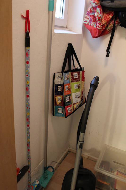 Besen & Wischer haben wir platzsparend an die Wand gehangen,