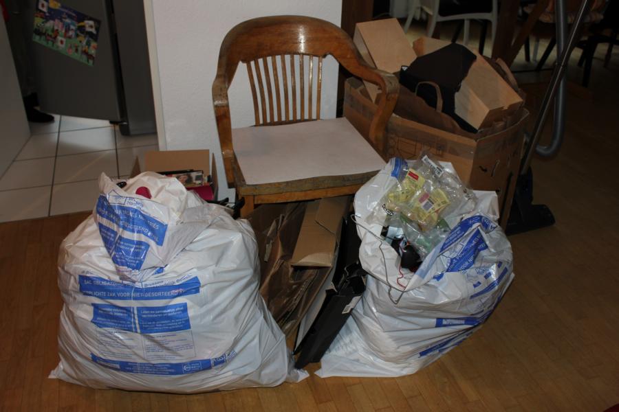 Die Unordnung vom Morgen ist einem großen Berg aussortierter Dinge gewichen.