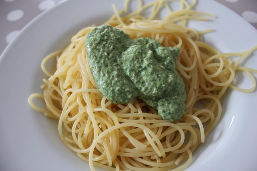 Das hört sich ja toll an. Ich glaube ich probiere das auch mal mit frischem Spinat. Bei uns gab es übrigens auch Spaghetti aber mit Basilikum-Pesto. Ich liebe Pesto!