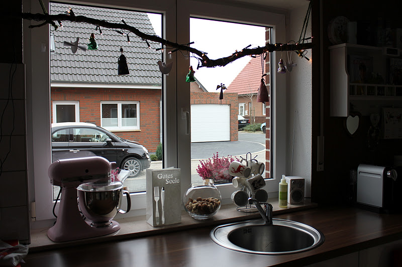Hier sind die (noch am besten getroffenen) Fotos von meinem weihnachtlich winterlich dekorierten Küchenfenster: