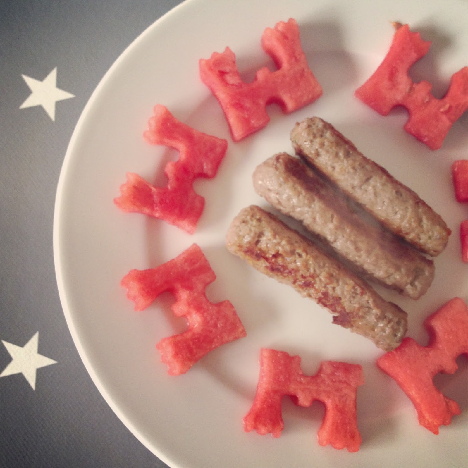 Samstag Mittag gab es Chevapcici, die mich am Tag vorher an der Fleischtheke angelacht haben. Die Melone hat sich dazugeschlichen und ergab eine perfekte Kombination: