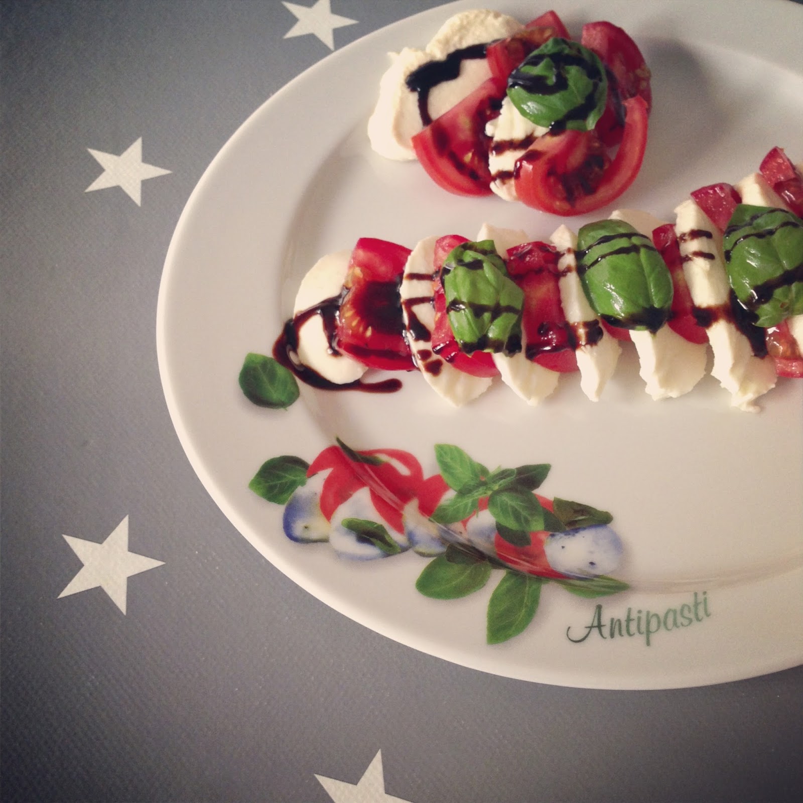 Abends gab es Tomate-Mozzarella mit Basilikum: