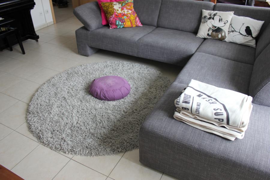 Das runde Bodenkissen finde ich toll. Und das eckige bunte auf der Couch, verätst Du, wo die her sind?